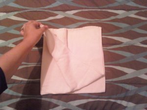 Then fold the other side over creating a long rectangle or pad. Lay into a diaper cover and put on your baby.